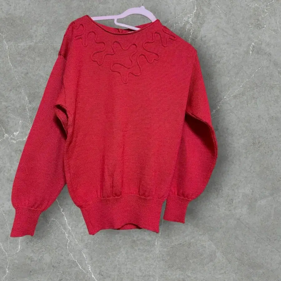 빨간색 니트 레트로 VOSGES 레드 니트 스웨터 벌룬 슬리브