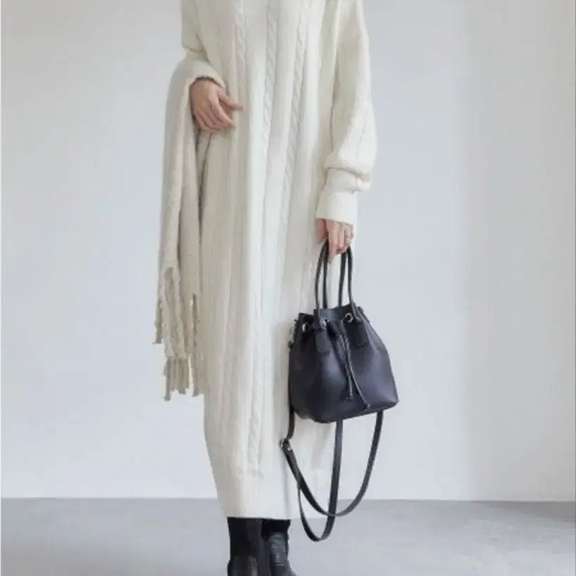 amel 케이블 니트 원피스 아이보리