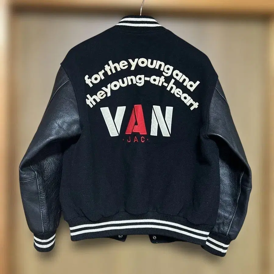 VAN JAC 스타디움 점퍼 소매 가죽 블랙 L 사이즈