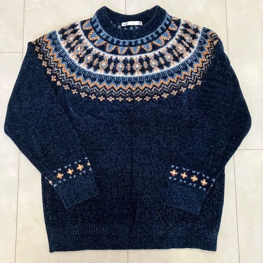 ikka 페어아일 패턴 니트 스웨터 다크 블루