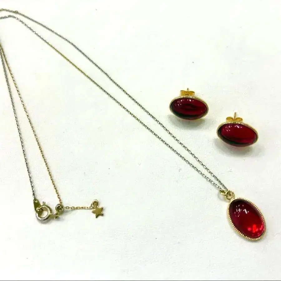 빨간색 체코 유리 귀걸이와 목걸이 세트