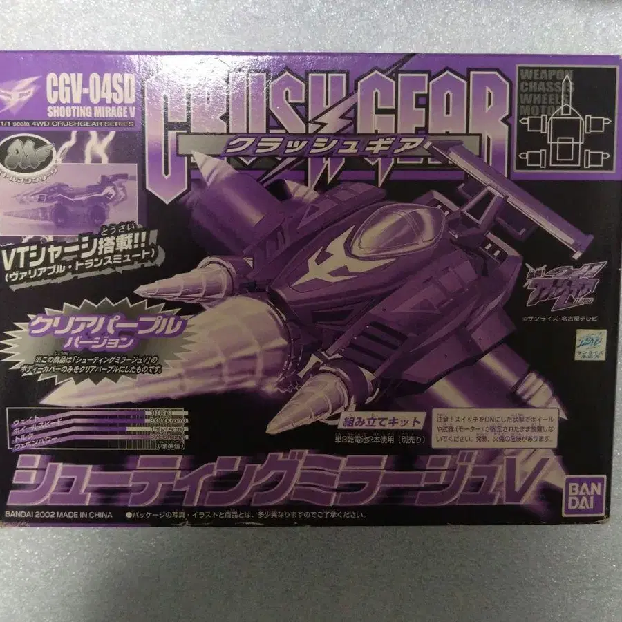 크러쉬 기어 CGV-04SD 슈팅 미라쥬 미사용 새상품이므로 모터나 본체 상태는 알 수 없습니다. 오래된 제품이므로 노후화는 있을 것으로 생각됩니다. 상자에 데미지가 있습니다.