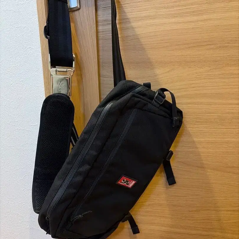 크롬 블랙 나일론 바디백
