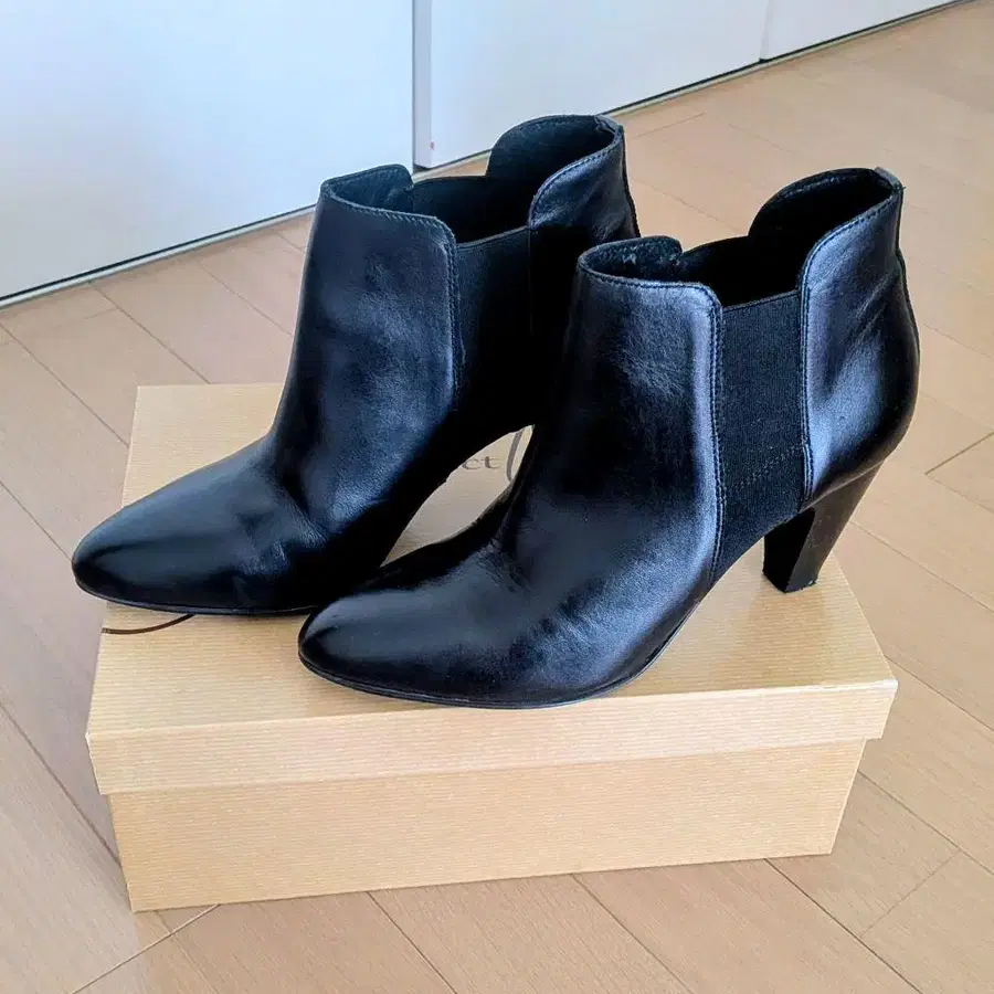 블랙 사이드 고어 부츠 힐 8cm