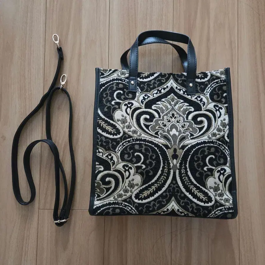 [ 2WAY ] 페이즐리 무늬 토트백/숄더백 블랙 x 베이지