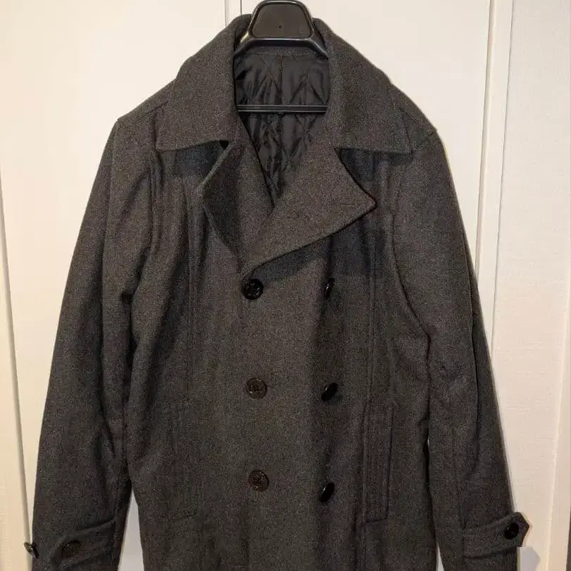 그레이 울 피 코트 더블 브레스트 L 사이즈 정도
