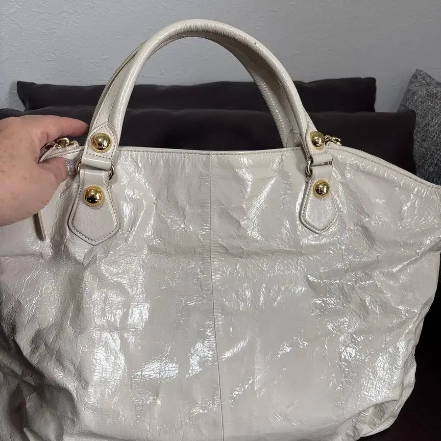 러셋 아이보리 색상 돈피 토트백