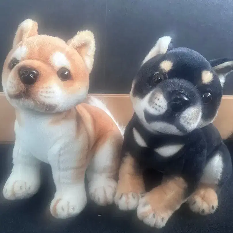 시바견 봉제 인형 세트 (블랙, 브라운)
