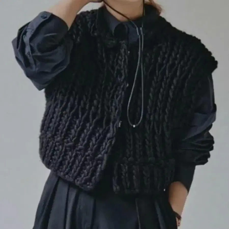 • 니코앤드 니트 베스트 크롭 블랙 양모 모헤어 M
