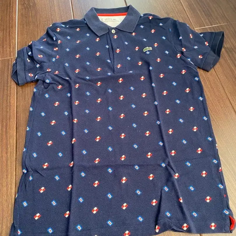 LACOSTE 네이비 기하학 패턴 피케 셔츠