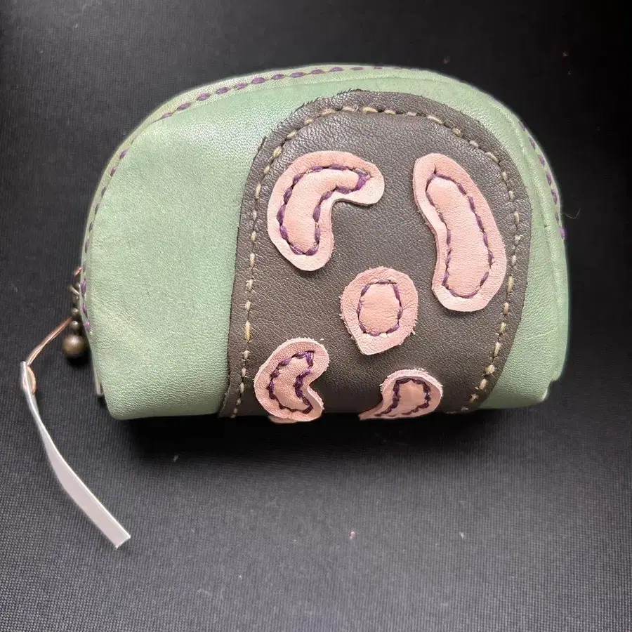 유니크 천연 가죽 그린 핸드메이드 코인 케이스 아프리카 원단