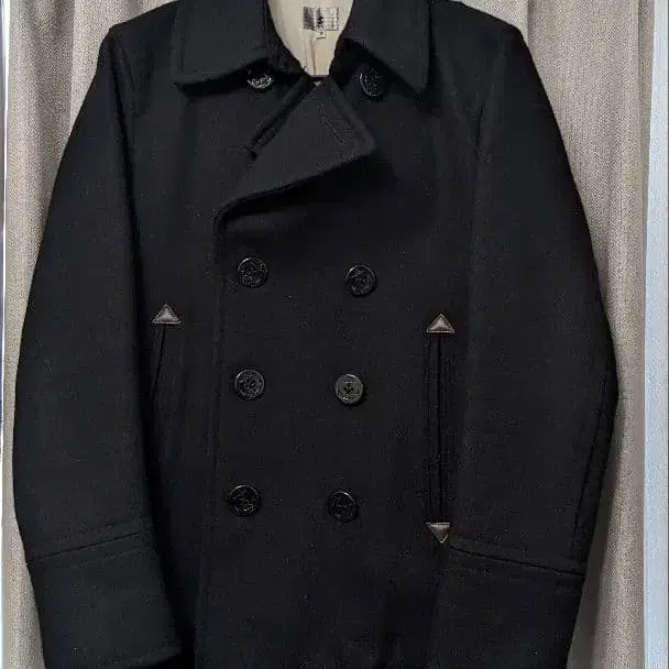 울 피코트 블랙 더블 브레스트