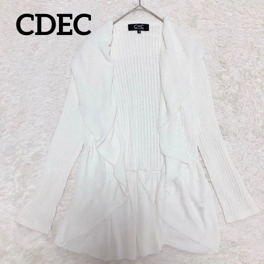 리브 니트 가디건 프릴 페플럼 화이트 38 얇은 소재 비침 숄 스타일