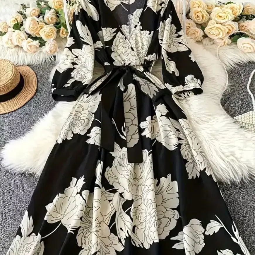 • noela 꽃무늬 7부 소매 롱 원피스 M 사이즈