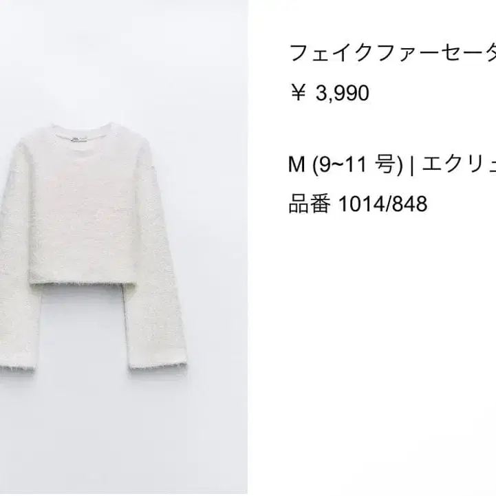 [ 미사용 ] ZARA 자라 인조 모피 스웨터 화이트