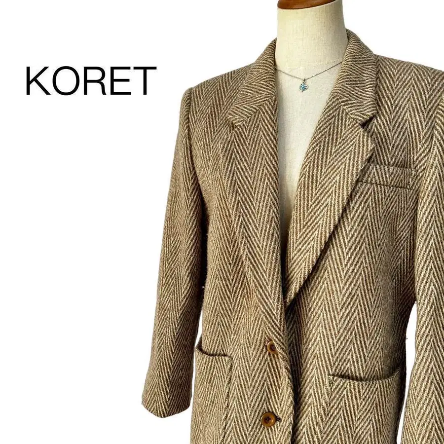 KORET 테일러드 자켓 헤링본 울 100% 브라운 [ 9 ]