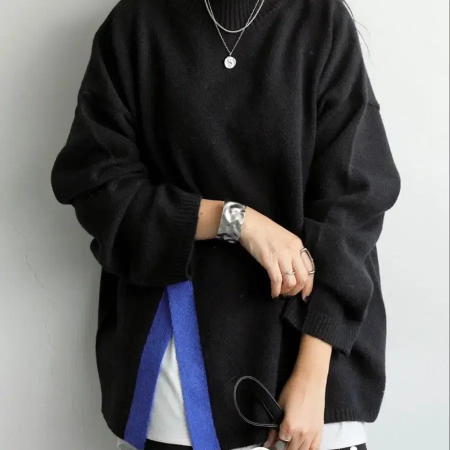 [ 새상품 ] antiqua 하이넥 슬릿 니트 one size