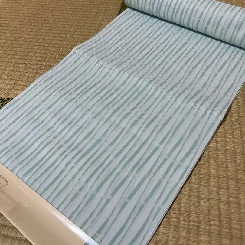 새상품급 미재단 폴리 유젠 주단 원단 체크 패턴 얇은 그린 원단