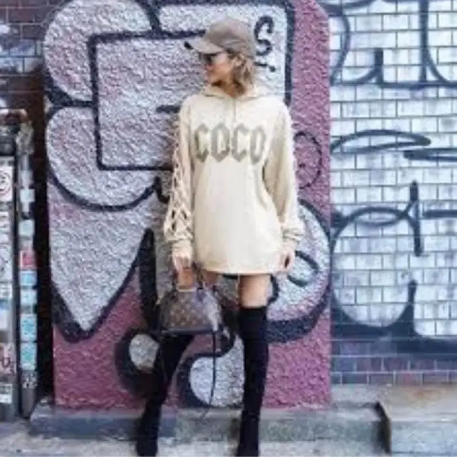 미러나인 Coco 로고 후드 부착 베이지 후드티