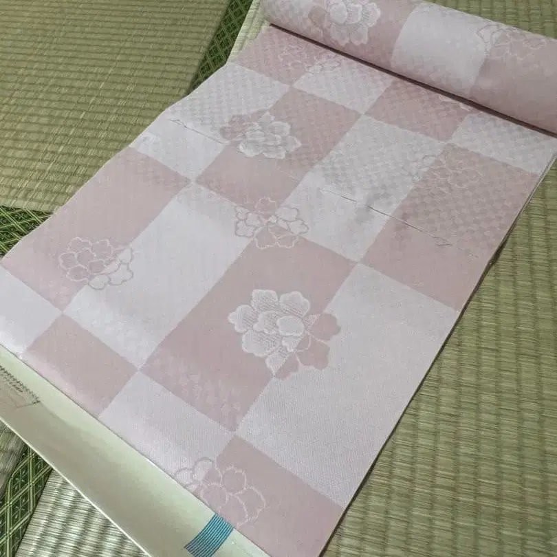 새상품급 미봉제 폴리 유젠 주단지 체크 패턴 핑크지
