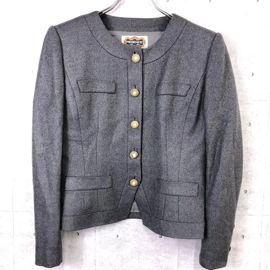 레트로 REGENCE 구제 의류 버블 스타일 장식 버튼 노카라 울 자켓