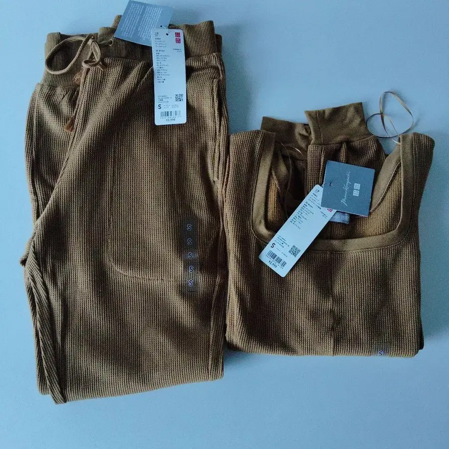 미사용 새상품 마메쿠로구치 히트텍 상하의 세트 와플 S 브라운