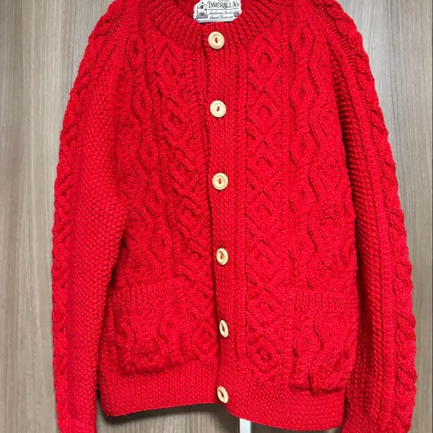 인버앨런 4A 아란 가디건 빨간색 옷깃 없음