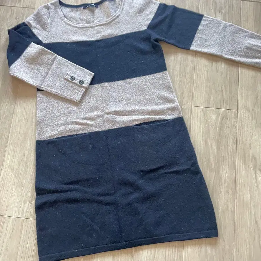 로트레아몽 보더 니트 원피스 긴팔 블랙x베이지