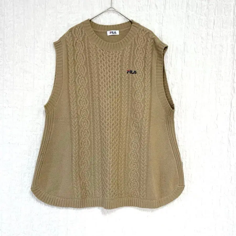 3474 FILA 휠라 니트 베스트 롱 베스트 베이지 자수 LL