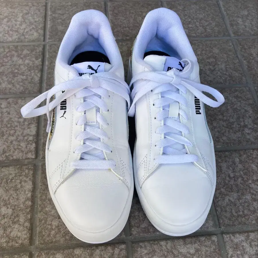 PUMA 화이트 레오파드 무늬 스니커즈 23cm