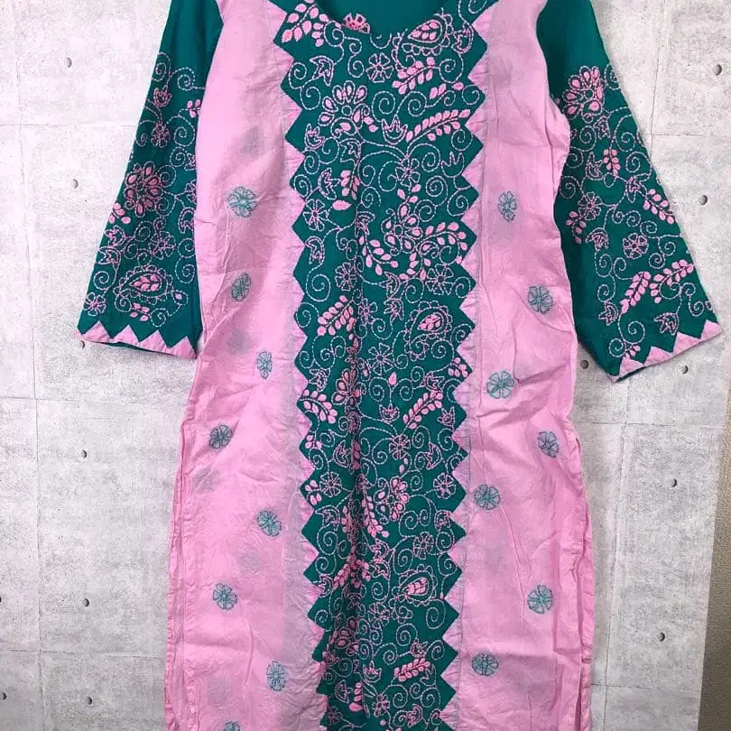 에스닉 민족 구제 의류 꽃무늬 보타니컬 자수입 7부 소매 튜닉 원피스