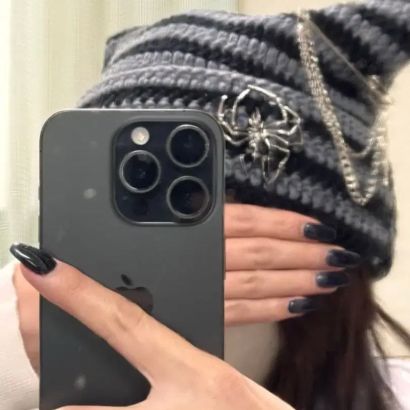 고양이 귀 니트 모자 참 포함 Y2K 서브컬쳐