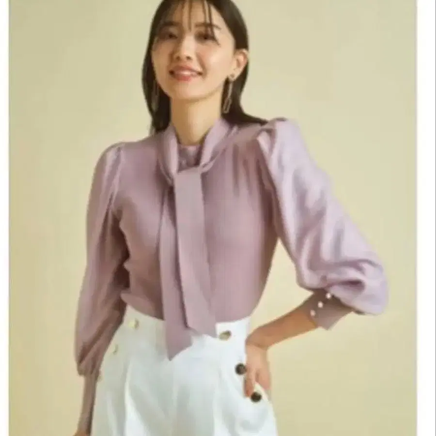 JUSGLITTY 핑크 리본 부착 셔츠 니트 보타이