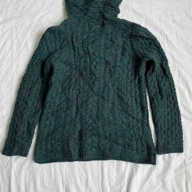 Aran Crafts 그레이/그린 아일랜드제 하이넥 케이블 니트