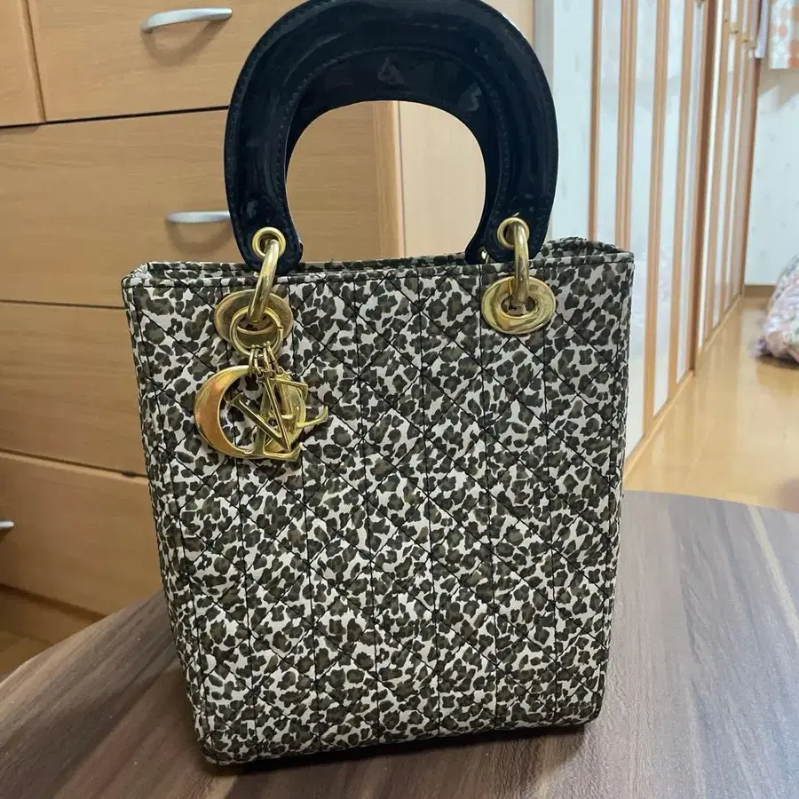 레오파드 무늬 퀼팅 핸드백