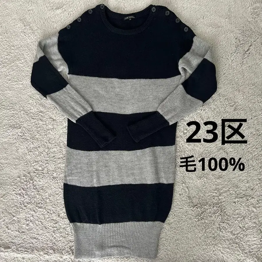 23구 보더 롱 니트 울 100% 사이즈 38 고품질