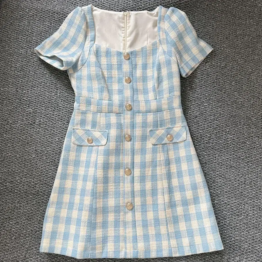 블루 x 화이트 체크 무늬 반팔 원피스 M 사이즈 새상품급