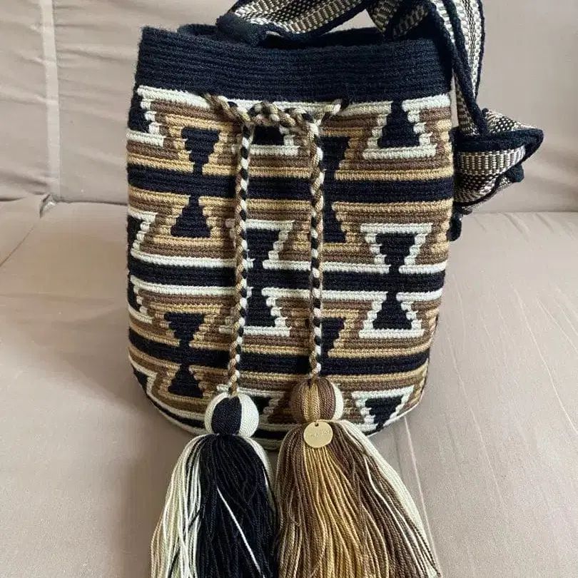 CHILA BAGS/Medium CHILA Bags 원산국: 컬럼비아 ◎ 현재 온라인에는 게재되지 않은 디자인으로, 가을/겨울에 딱 맞는 컬러입니다. 매장에서 골랐는데, CHILA BAGS 상품은 매우 섬세한 짜임으로 퀄리티가 높습니다. 바닥 플레이트도 함께 드립니다. 구매 후 1~2회만 사용했습니다. 얼룩 등도 없습니다. 하나하나가 와유 민족 분들의 핸드메이드로, 똑같은 것은 두 개 없습니다. 바닥 디자인은 제작자 분의 가문과 같은 것이라고 합니다. 치수 측정: 가로 길이: 19-20cm, 높이: 20-22cm, 스트랩 길이: 95cm-110cm ※ 핸드메이드이므로 상품에 따라 사이즈에 차이가 있습니다. 정가 25,300엔 <About Wayuu Bag> 컬럼비아, 베네수엘라 북부에 살며, 옛날부터 이어져 온 문화, 생활 방식, 언어 등을 지키며 살아가는 남아메리카 원주민 Wayuu Tribe (와유 민족). 어머니에서 딸로 만드는 방법을 전수하며 대대로 이어지는 올 핸드메이드의 컬러풀한 버킷백은 Wayuu Bag (와유 백)이라고 불리며, 수작업으로 2주~1개월 정도 걸려 완성됩니다. 하나하나의 패턴에 각각 의미를 가지며, 와유 민족의 생활필수품으로 매일 사용되고 있습니다. -About CHILA BAGS- 컬럼비아 출신의 젊은 오너, 로라가 설립한 [CHILA BAGS]는 남아메리카 원주민 와유 민족이 어머니에서 딸로 대대로 기술을 계승한 가방에 새로운 감성을 불어넣어, 팝하고 모던한 오리지널 디자인을 만들어내는 컬럼비아 발 브랜드입니다. 제작자의 생활 향상을 목표로 하는 윤리적인 노력에도 주목받고 있으며, 소셜 프로덕트 어워드 2018 우수상 수상. 전통 가방에 매력적인 디자인으로 전 세계 패션 블로거와 셀럽들도 애용하며 주목받고 있습니다. <CHILA BAGS> 이 가방은 더블 스레드(2본사)로 짜여 있으며, 약 2주에 걸쳐 완성됩니다. 스트랩 부분이 화려하며, 캐주얼한 인상을 주는 존재감 있는 가방입니다. <가방 관리 방법> 본 상품은 손세탁 가능합니다. 손세탁 시 미온수로 부드럽게 세탁해 주세요. 타월 드라이로 물기를 제거한 후, 통풍이 잘 되는 곳에서 그늘 건조해 주세요.