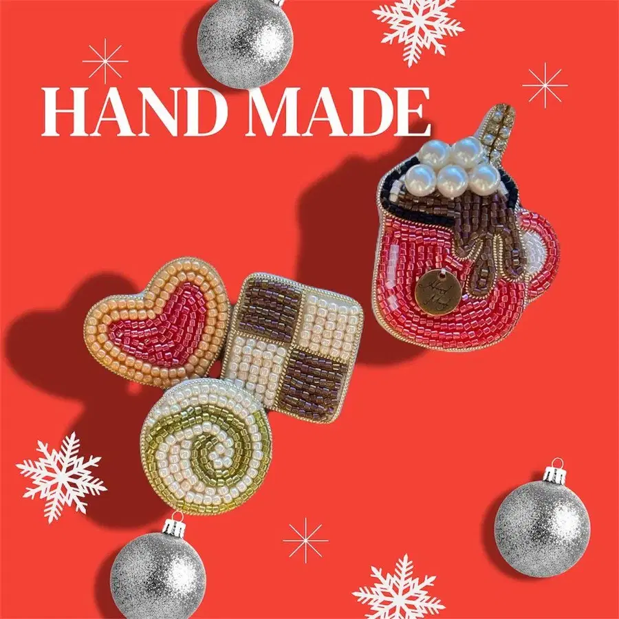핸드메이드 비즈 자수 브로치 세트 쿠키 & 마쉬멜로우 코코아