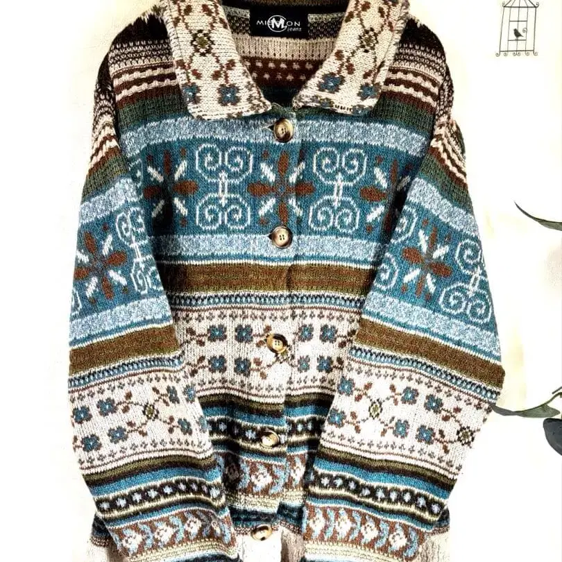 • L 미쏘니 니트 가디건 롱 올 패턴 멀티 컬러 버튼