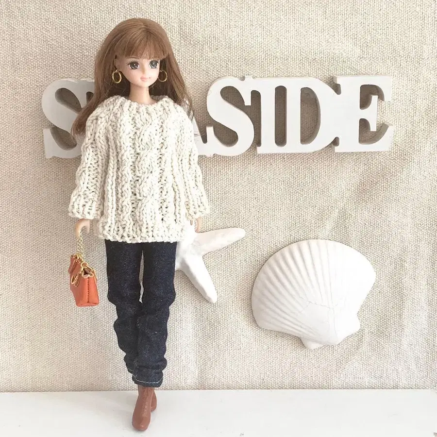 제니 인형 의류 4세트 핸드메이드 27cm 미색 케이블 짜임 스웨터