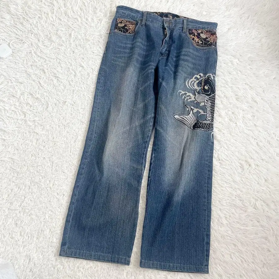 memory special 데님 배기 팬츠 일본풍 잉어 허리 88 빅
