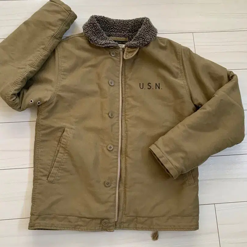 U.S.N. 로고 포함 카키 N1 덱 자켓