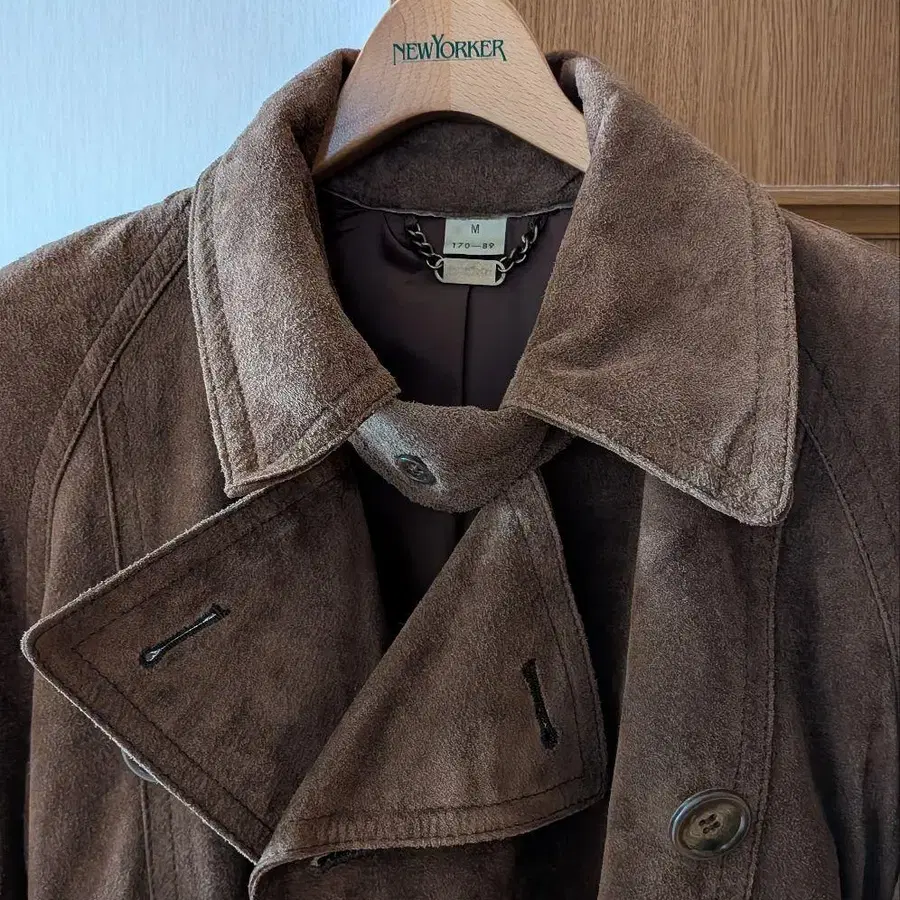 컨디션 최상 더블 브레스트 가죽 코트 스웨이드 센터 벤트 턱 스트랩