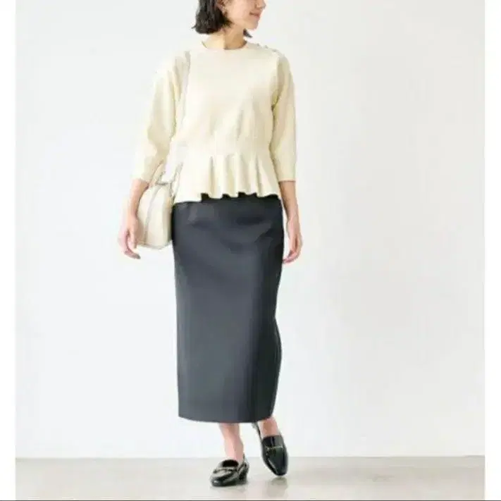 그린 라벨 릴랙싱 더블 새틴 l 라인 내로우 타이트 스커트