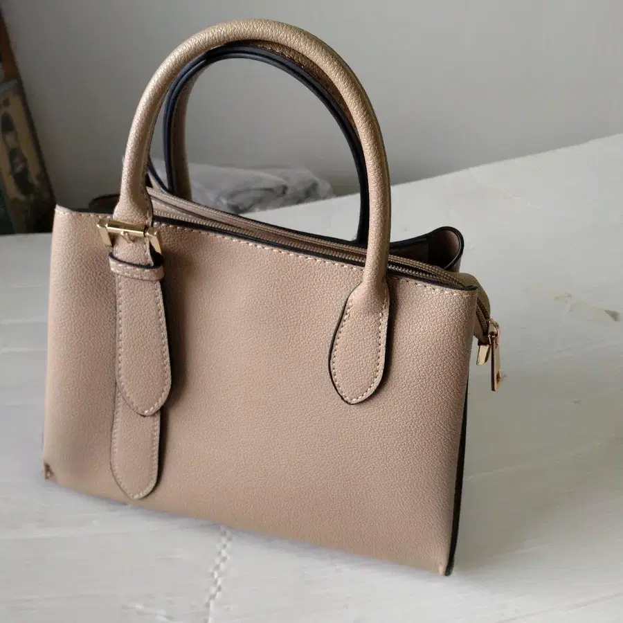 베이지 핸드백 합성 피혁