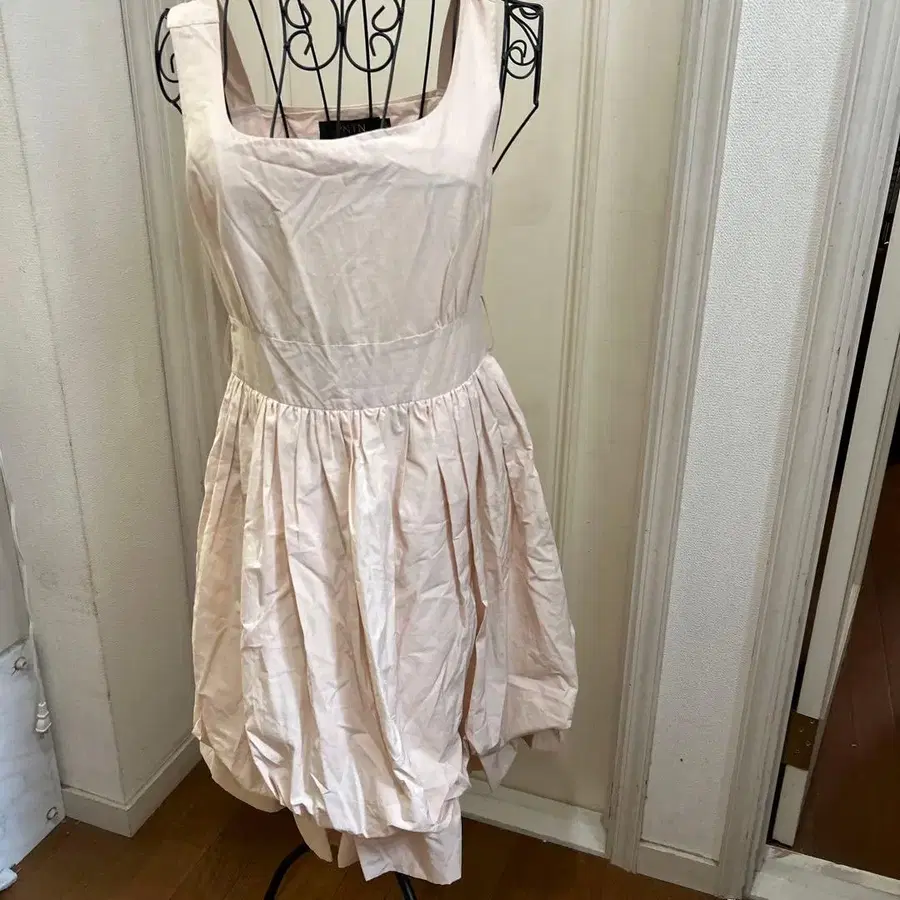 연한 핑크색 슬리브리스 드레스