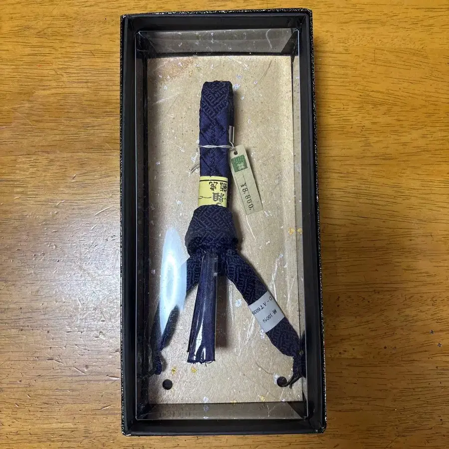 다크 네이비 순수 실크 손뜨개 하오리 끈 박스형
