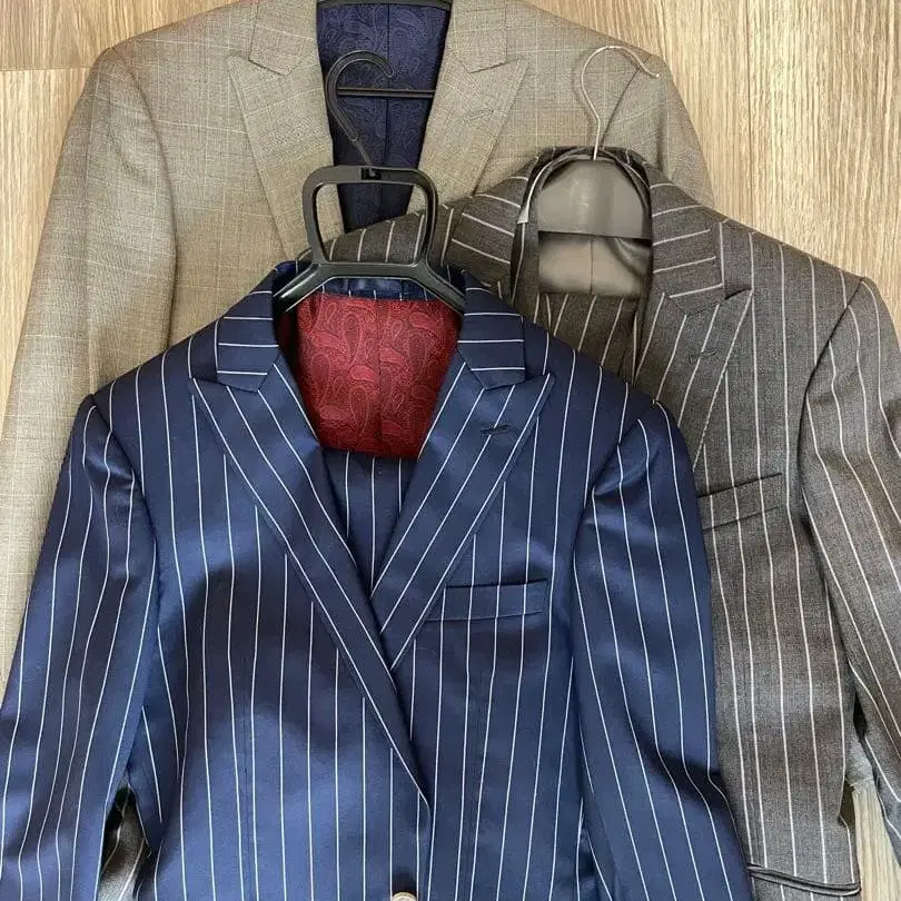 네이비, 그레이, 그레이의 비즈니스 정장 3세트입니다.