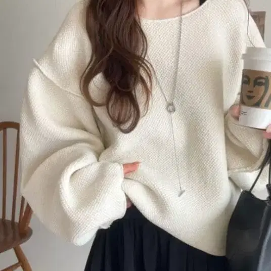 클래식 엘프 모헤어 실 자카드 편직 니트 풀오버